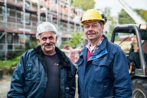 “Ik wil graag timmerman worden, lekker in de buitenlucht werken, zo blijf ik jong.” Een mooie motivatie van onze bouwvakhulp Tarik Sari (links), die door Groene Hart Service en Stichting Doorzaam wordt opgeleid tot Timmerman om zijn kansen op de arbeidsmarkt te verbeteren.